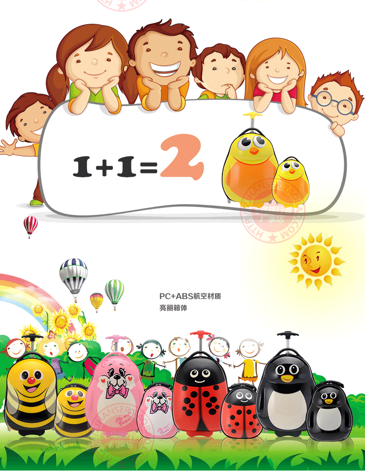 名稱:兒童拉桿箱 型號(hào):XB-10 材質(zhì):PC-ABS 顏色:多色圖案